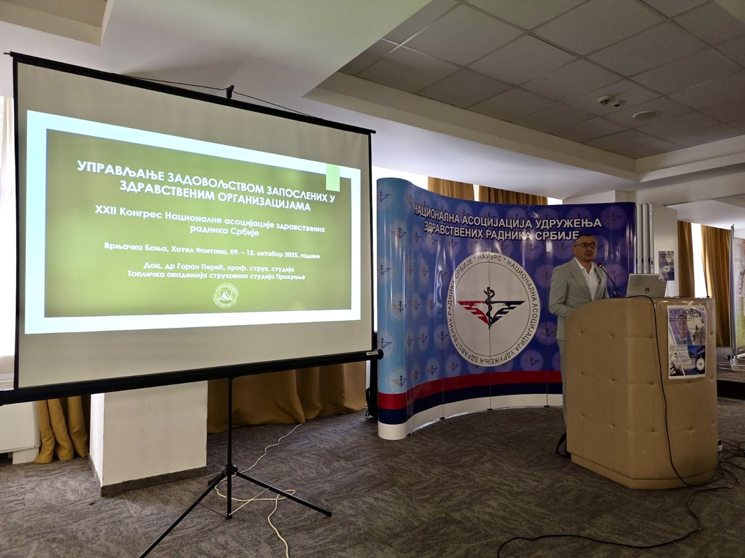 Помоћник председника Академије за наставу и дуалне студије и професор Одсека за пословне студије Блаце, др Горан Перић, одржао је пленарно предавање на тему „Управљање задовољством запослених у здравственим организацијама“ у оквиру XXII Конгреса Националне асоцијације удружења здравствених радника Србије са међународним учешћем (акредитациони број: A-1-38/25).